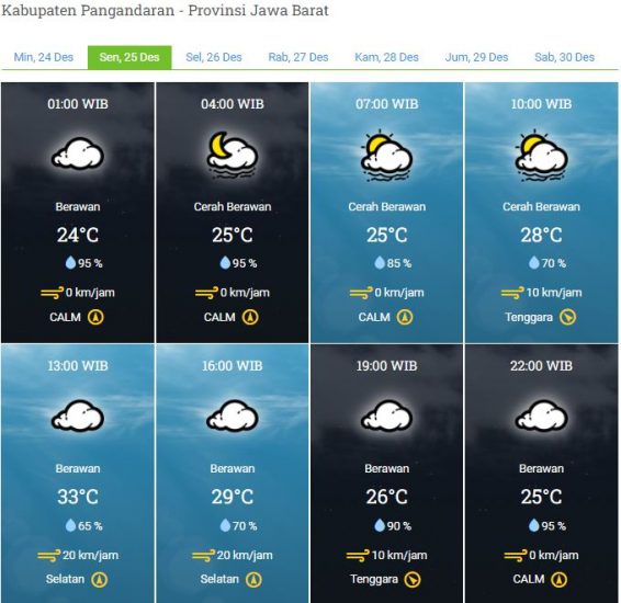 Kecepatan Angin : 0 – 20 km/jam