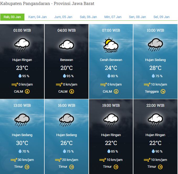 Laporan Harian & Prakiraan Cuaca Kabupaten Pangandaran – Rabu, 03 Januari 2024