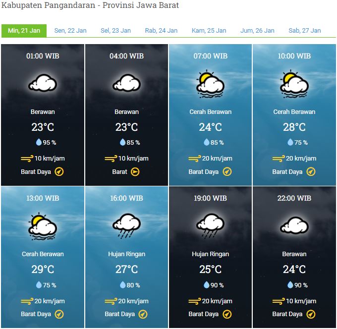 Laporan Harian & Prakiraan Cuaca Kabupaten Pangandaran – Minggu, 21 Januari 2024