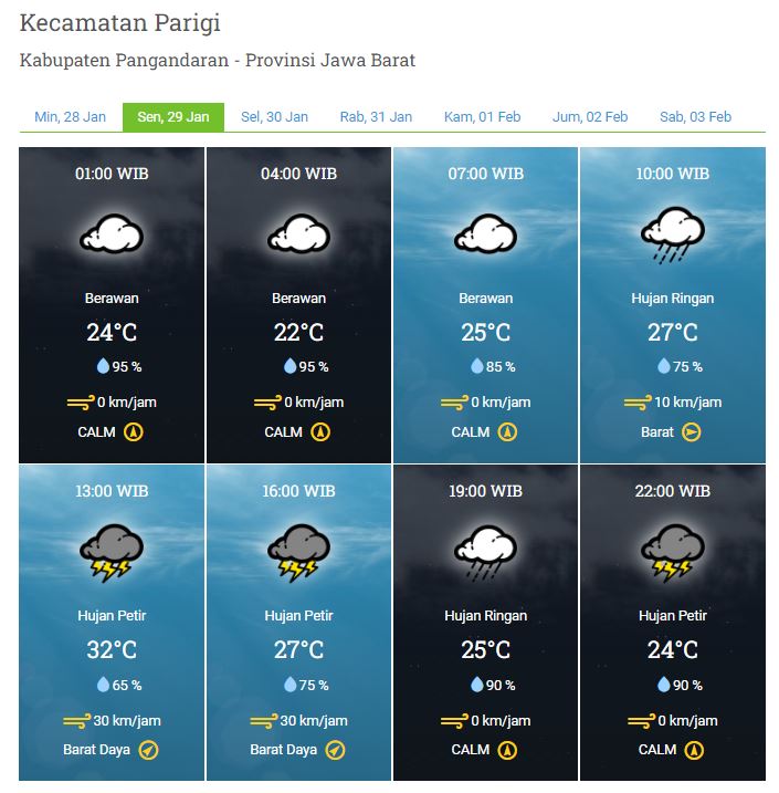 Laporan Harian & Prakiraan Cuaca Kabupaten Pangandaran – Senin, 29 Januari 2024