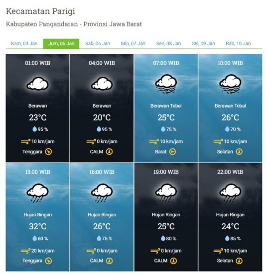 Laporan Harian & Prakiraan Cuaca Kabupaten Pangandaran – Jumat, 05 Januari 2024