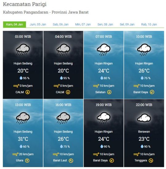 Laporan Harian & Prakiraan Cuaca Kabupaten Pangandaran – Kamis, 04 Januari 2024
