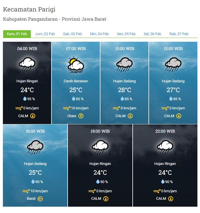 Laporan Harian & Prakiraan Cuaca Kabupaten Pangandaran – Kamis, 1 Februari 2024