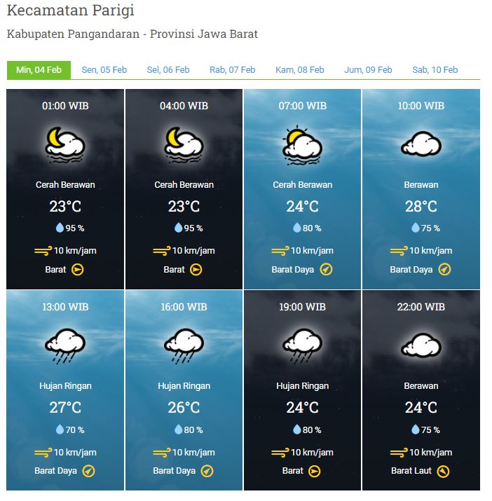 Laporan Harian & Prakiraan Cuaca Kabupaten Pangandaran – Minggu, 04 Februari 2024