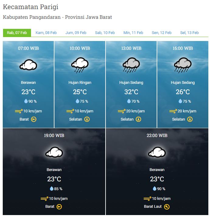 Laporan Harian & Prakiraan Cuaca Kabupaten Pangandaran – Rabu, 07 Februari 2024