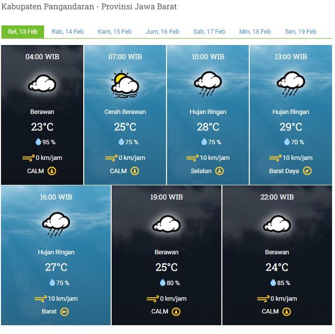 Laporan Harian & Prakiraan Cuaca Kabupaten Pangandaran – Selasa, 13 Februari 2024