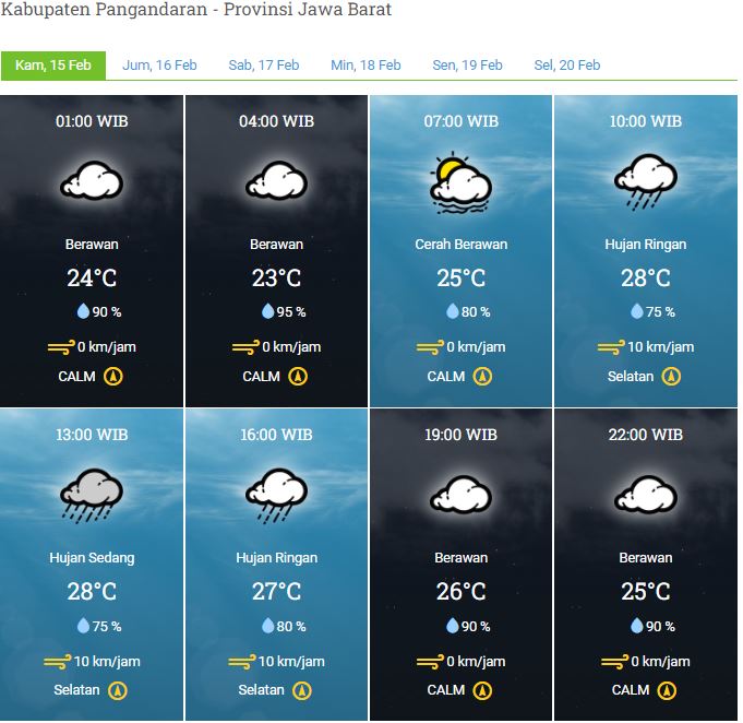 Laporan Harian & Prakiraan Cuaca Kabupaten Pangandaran – Kamis, 15 Februari 2024