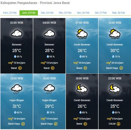 Laporan Harian & Prakiraan Cuaca Kabupaten Pangandaran – Jum’at, 23 Februari 2024