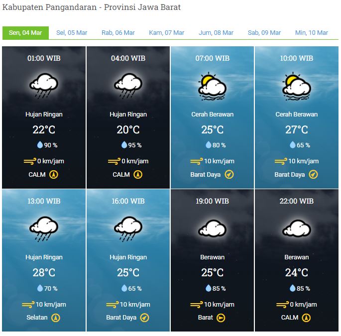 Laporan Harian & Prakiraan Cuaca Kabupaten Pangandaran – Senin, 04 Maret 2024