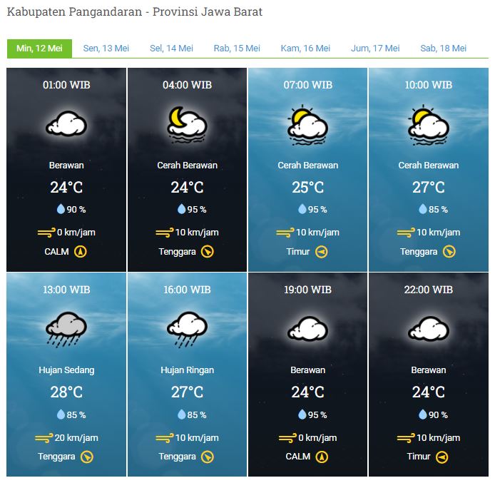 Laporan Harian & Prakiraan Cuaca Kabupaten Pangandaran – Minggu, 12 Mei 2024