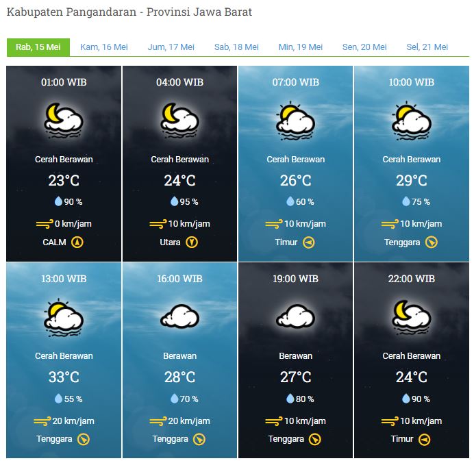 Laporan Harian & Prakiraan Cuaca Kabupaten Pangandaran – Rabu, 15 Mei 2024