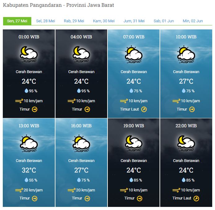Laporan Harian & Prakiraan Cuaca Kabupaten Pangandaran – Senin, 27 Mei 2024