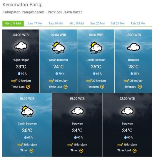 Laporan Harian & Prakiraan Cuaca Kabupaten Pangandaran – Kamis, 16 Mei 2024