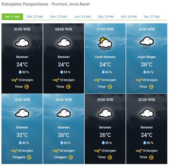 Laporan Harian & Prakiraan Cuaca Kabupaten Pangandaran – Selasa, 21 Mei 2024