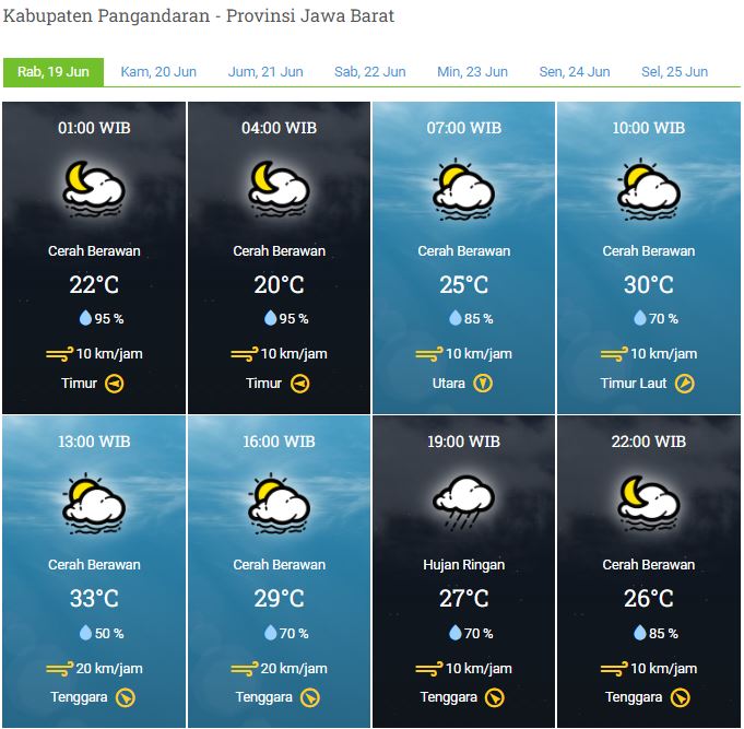 Laporan Harian & Prakiraan Cuaca Kabupaten Pangandaran – Rabu, 19 Juni 2024