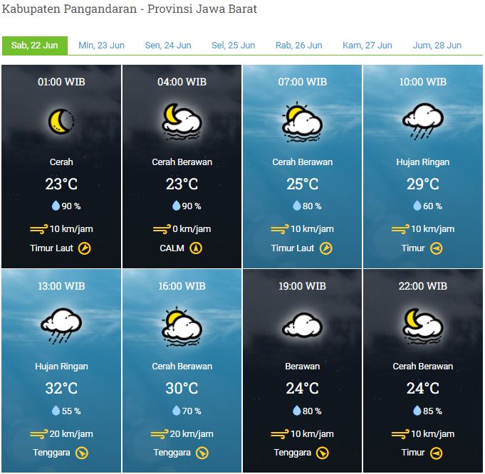 Laporan Harian & Prakiraan Cuaca Kabupaten Pangandaran – Sabtu, 22 Juni 2024