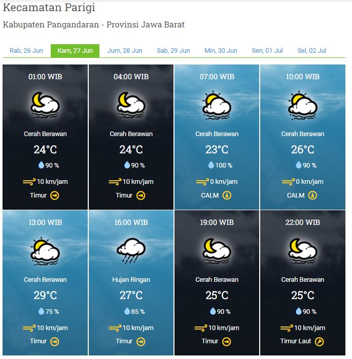 Laporan Harian & Prakiraan Cuaca Kabupaten Pangandaran – Kamis, 27 Juni 2024