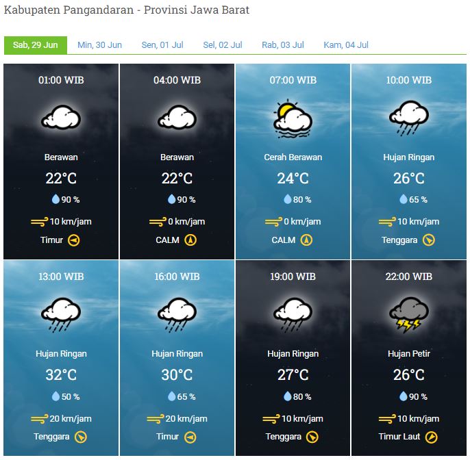 Laporan Harian & Prakiraan Cuaca Kabupaten Pangandaran – Sabtu, 29 Juni 2024
