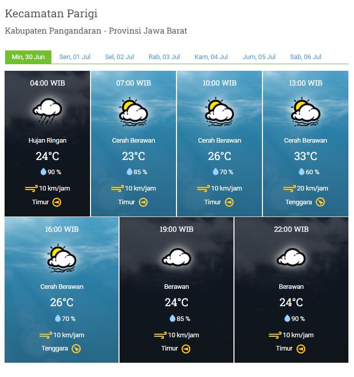 Laporan Harian & Prakiraan Cuaca Kabupaten Pangandaran – Minggu, 30 Juni 2024