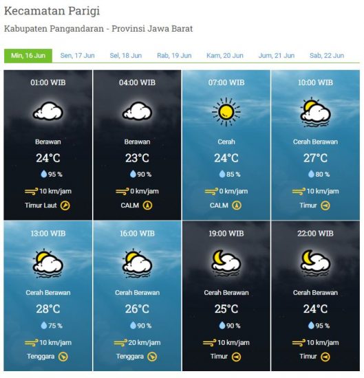 Kecepatan Angin : 0 – 20 km/jam
