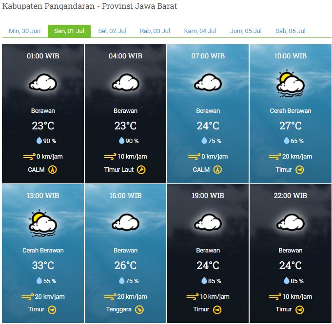 Laporan Harian & Prakiraan Cuaca Kabupaten Pangandaran – Senin, 01 Juli 2024