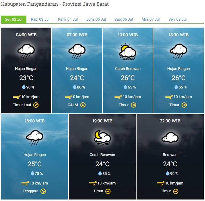 Laporan Harian & Prakiraan Cuaca Kabupaten Pangandaran – Selasa, 02 Juli 2024