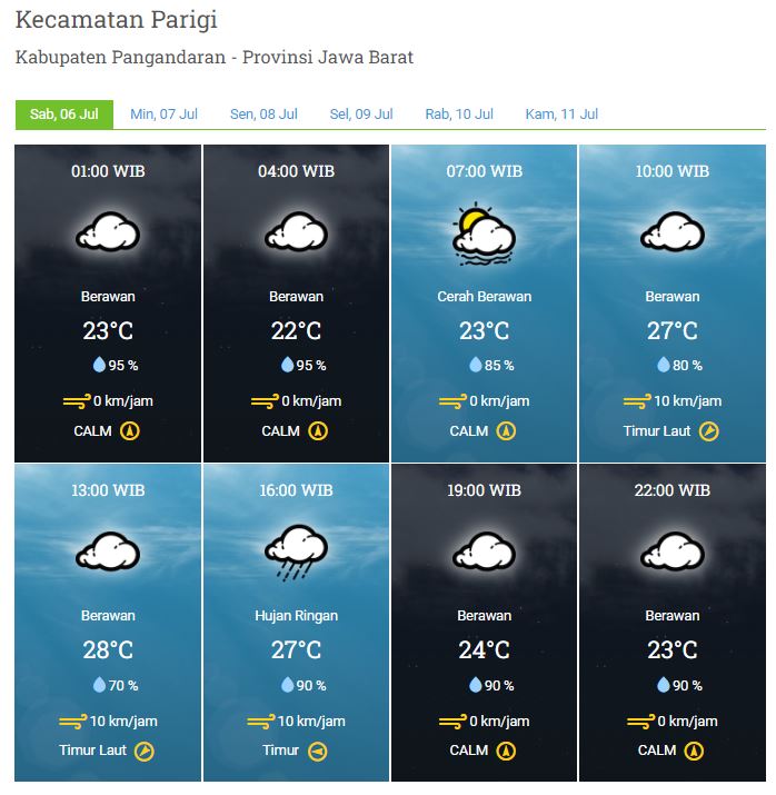 Laporan Harian & Prakiraan Cuaca Kabupaten Pangandaran – Sabtu, 06 Juli 2024