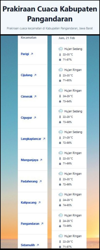 Laporan Harian & Prakiraan Cuaca Kabupaten Pangandaran – Jum’at, 21 Februari 2025.