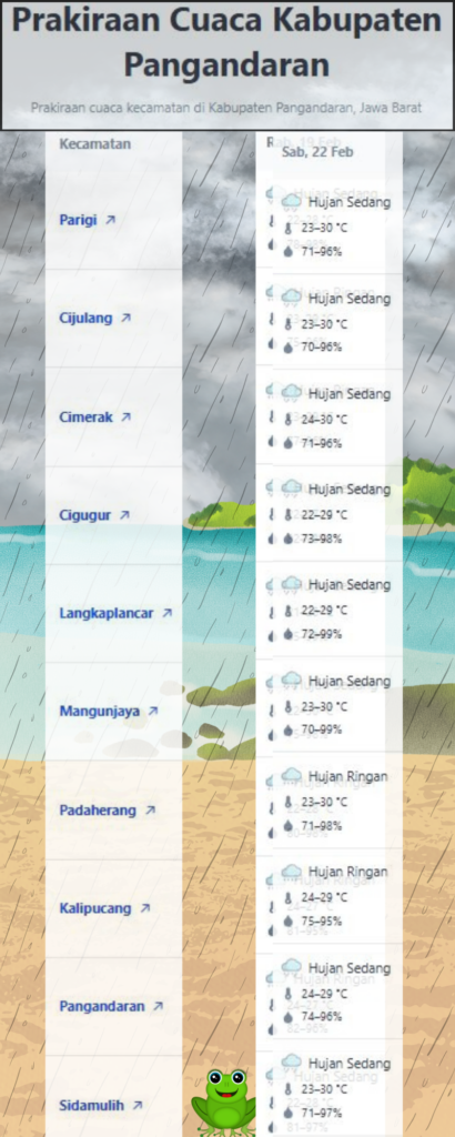 Laporan Harian & Prakiraan Cuaca Kabupaten Pangandaran – Sabtu, 22 Februari 2025.