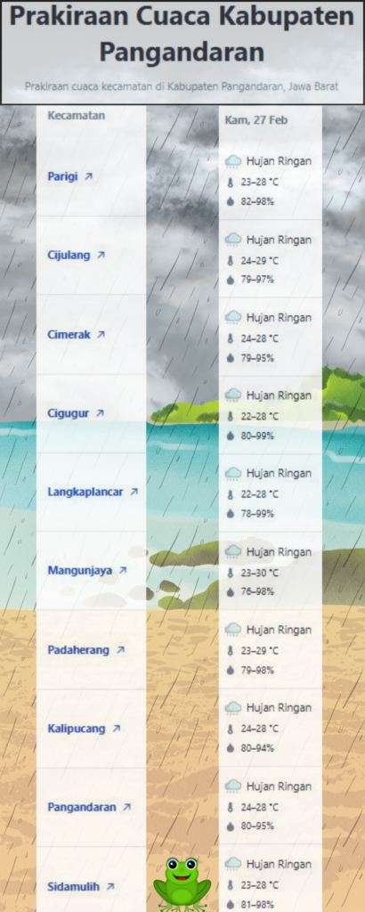 Laporan Harian & Prakiraan Cuaca Kabupaten Pangandaran – Kamis, 27 Februari 2025.