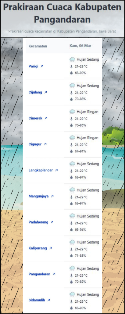 Laporan Harian & Prakiraan Cuaca Kabupaten Pangandaran – Kamis, 6 Maret 2025.