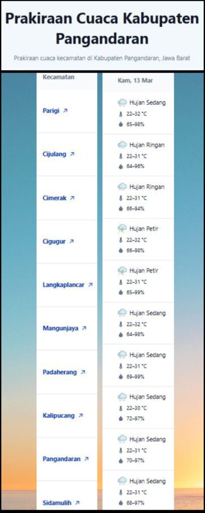 Laporan Harian & Prakiraan Cuaca Kabupaten Pangandaran – Kamis, 13 Maret 2025