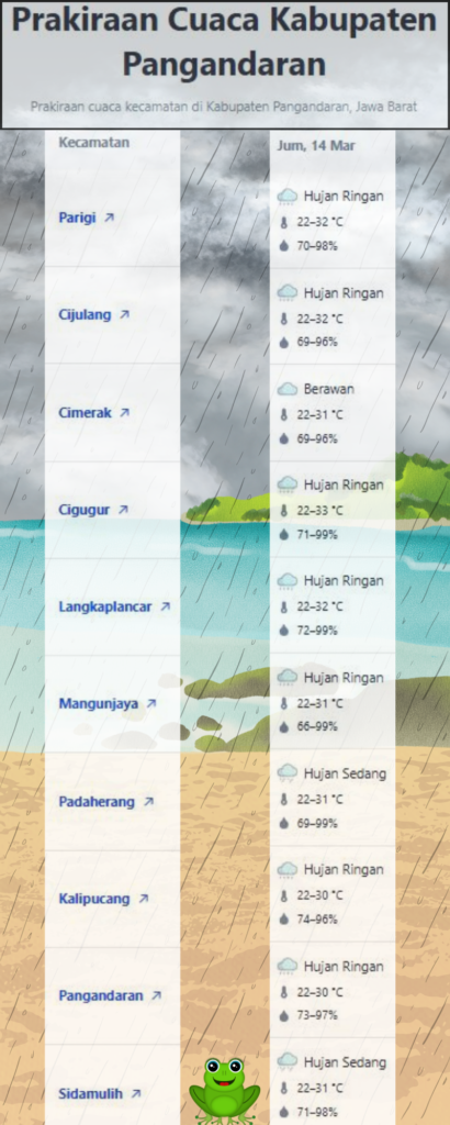 Laporan Harian & Prakiraan Cuaca Kabupaten Pangandaran – Jumat, 14 Maret 2025