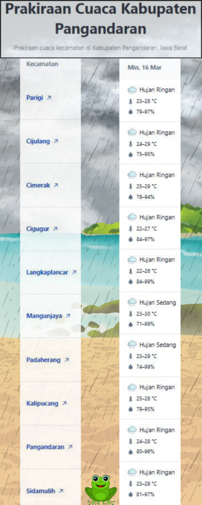 Laporan Harian & Prakiraan Cuaca Kabupaten Pangandaran – Minggu, 16 Maret 2025