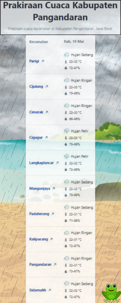 Laporan Harian & Prakiraan Cuaca Kabupaten Pangandaran – Rabu, 19 Maret 2025