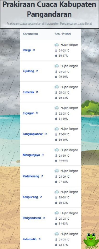 Laporan Harian & Prakiraan Cuaca Kabupaten Pangandaran – Senin, 19 Mei 2025.