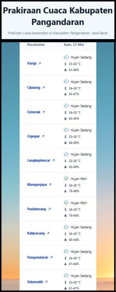 Laporan Harian & Prakiraan Cuaca Kabupaten Pangandaran – Kamis, 22 Mei 2025.