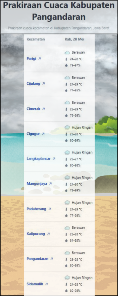 Laporan Harian & Prakiraan Cuaca Kabupaten Pangandaran – Rabu, 28 Mei 2025