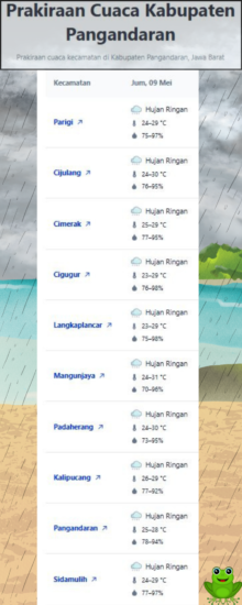 Laporan Harian & Prakiraan Cuaca Kabupaten Pangandaran – Jumat, 9 Mei 2025.