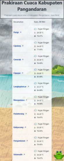 Laporan Harian & Prakiraan Cuaca Kabupaten Pangandaran – Kamis, 8 Mei 2025.