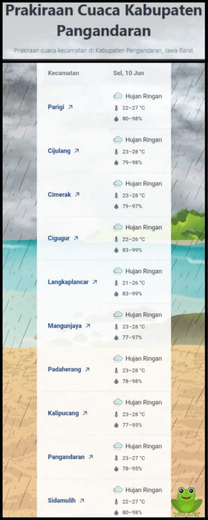 Laporan Harian & Prakiraan Cuaca Kabupaten Pangandaran – Selasa, 10 Juni 2025.