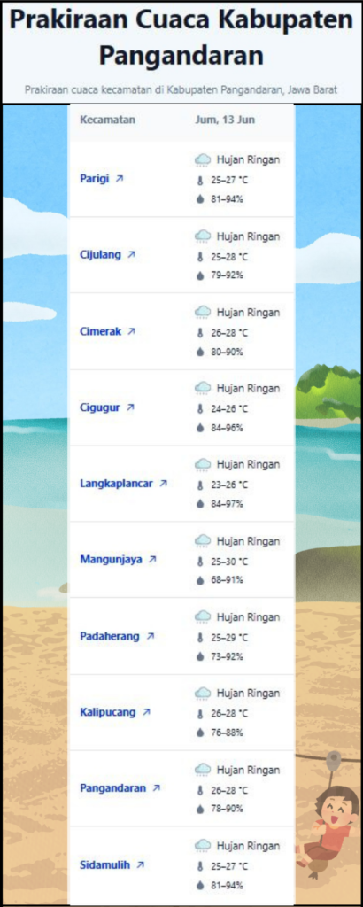 Laporan Harian & Prakiraan Cuaca Kabupaten Pangandaran – Jumat, 13 Juni 2025.