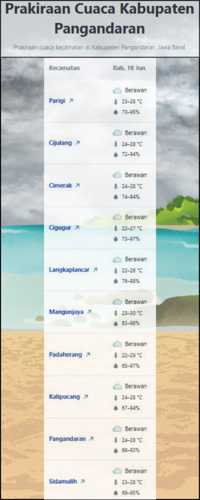 Laporan Harian & Prakiraan Cuaca Kabupaten Pangandaran – Rabu, 18 Juni 2025.