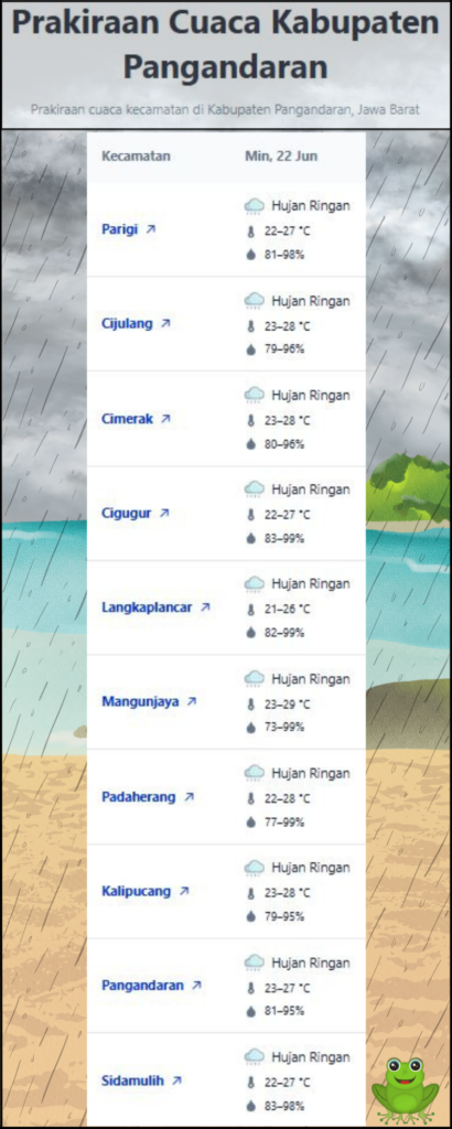 Laporan Harian & Prakiraan Cuaca Kabupaten Pangandaran – Minggu, 22 Juni 2025.