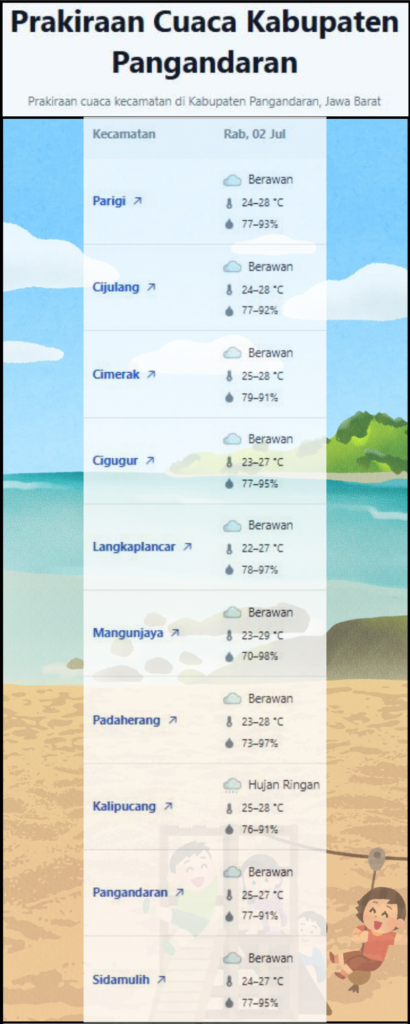 Laporan Harian & Prakiraan Cuaca Kabupaten Pangandaran – Rabu, 02 Juli 2025.