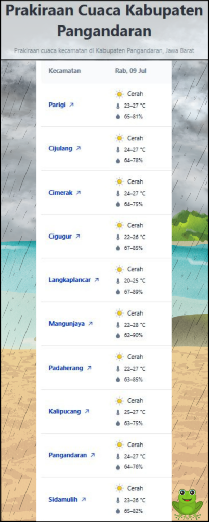 Laporan Harian & Prakiraan Cuaca Kabupaten Pangandaran – Rabu, 09 Juli 2025.