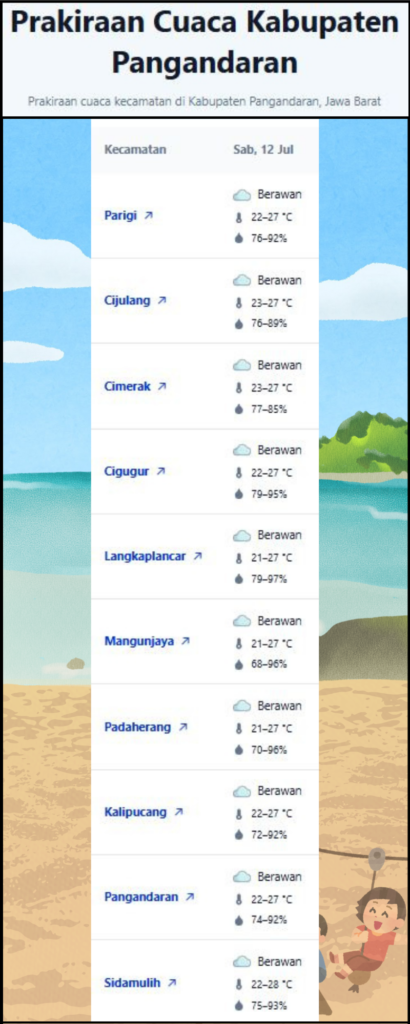 Laporan Harian & Prakiraan Cuaca Kabupaten Pangandaran – Sabtu, 12 Juli 2025.