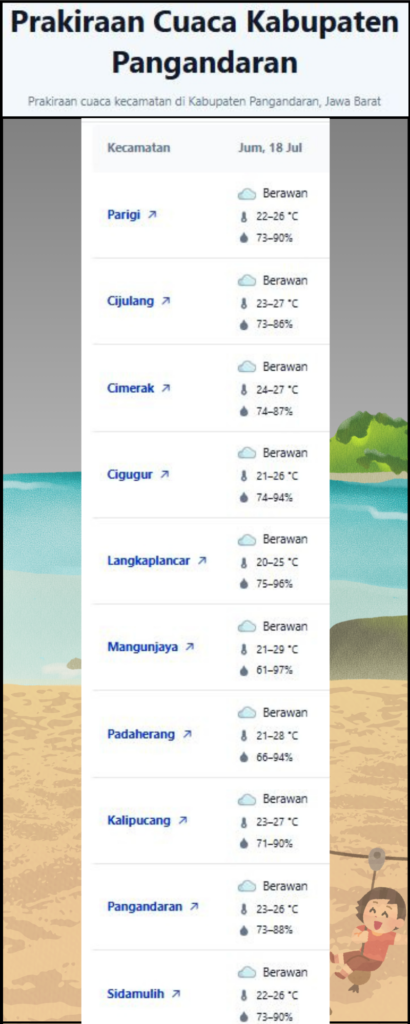 Laporan Harian & Prakiraan Cuaca Kabupaten Pangandaran – Jum’at, 18 Juli 2025