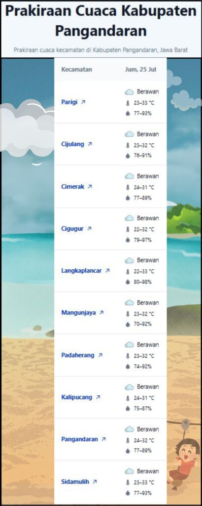 Laporan Harian & Prakiraan Cuaca Kabupaten Pangandaran – Jumat, 25 Juli 2025