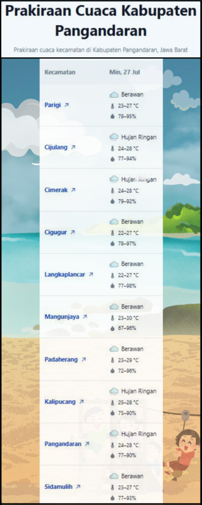 Laporan Harian & Prakiraan Cuaca Kabupaten Pangandaran – Minggu, 27 Juli 2025